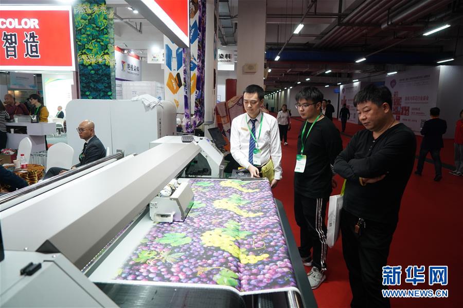10月16日,在第六届江苏(盛泽)纺博会上,参展商在展示一款数码印花机。新华社记者 季春鹏 摄