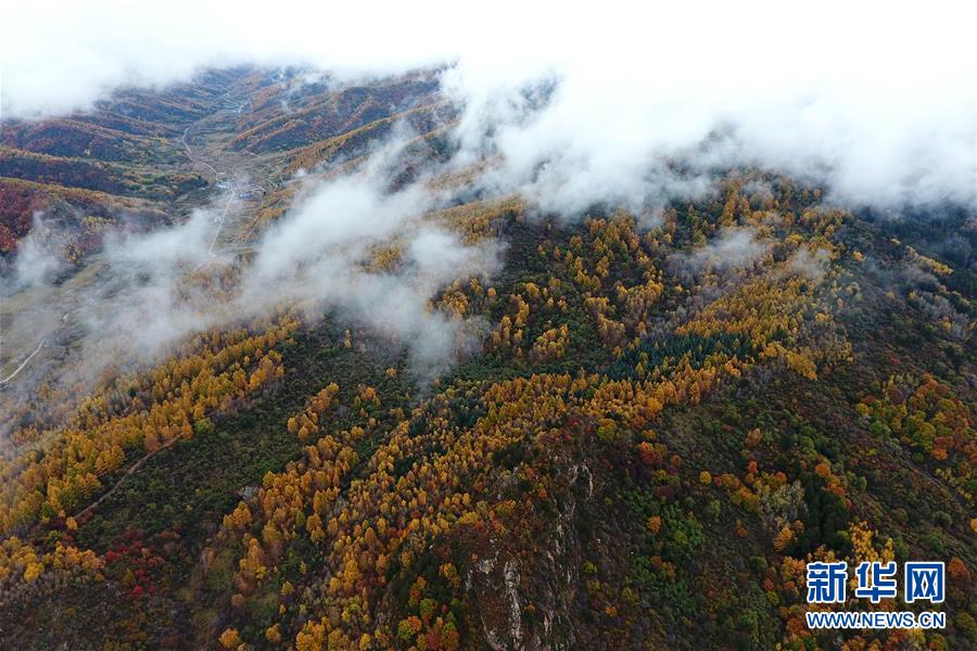 这是10月16日无人机拍摄的山西庞泉沟国家级自然保护区。 当日,雨后的山西庞泉沟国家级自然保护区云雾缭绕,景色迷人。庞泉沟国家级自然保护区位于山西省交城县和方山县交界处,森林覆盖率高达74%,是黄土高原上难得的绿洲,有“华北绿肺”之称。 新华社记者 詹彦 摄