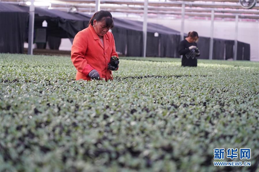 10月16日,工人在一家企业育苗基地管理北苍术幼苗。新华社记者 杨世尧 摄