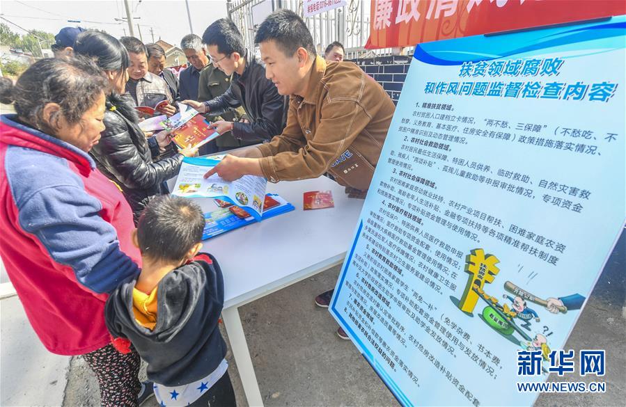 10月16日,河北省香河县纪检监察干部在渠口镇高山村向村民讲解精准扶贫政策。新华社记者 李晓果 摄