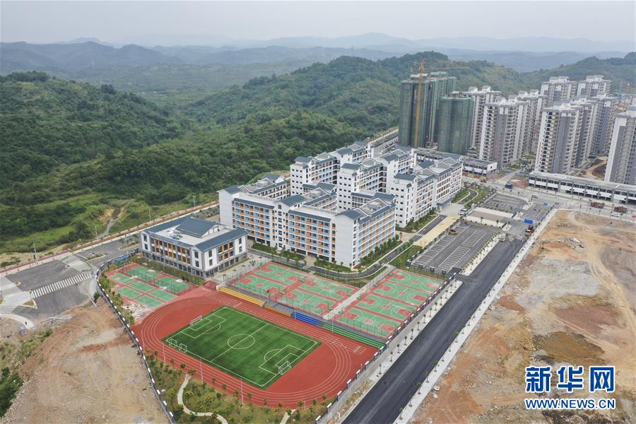 这是广西隆安县粤桂小学(10月16日无人机拍摄)。小学旁边的高层住宅楼是隆安县易地扶贫搬迁震东集中安置区。新华社记者 曹祎铭 摄