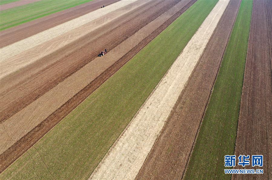 10月17日,在宝丰县肖旗乡解庄村,农民抢种小麦(无人机拍摄)。 近日,河南省宝丰县迎来晴好天气,农民抢抓农时耕种,田间地头一派繁忙景象。 新华社记者 李嘉南 摄