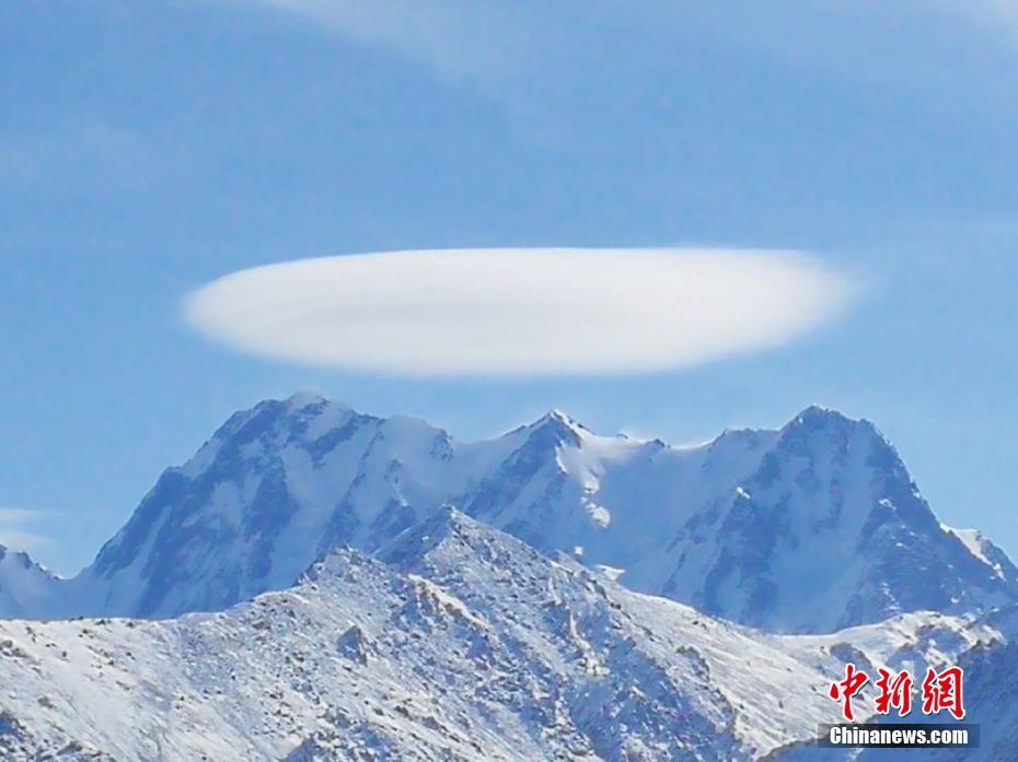 白云如巨型盘子,罩在雪山上。 吴可年 摄