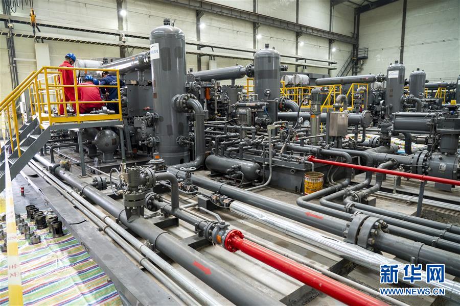 10月17日,工作人员在文23储气库注采站厂房内保养压缩机。 新华社记者 才扬 摄