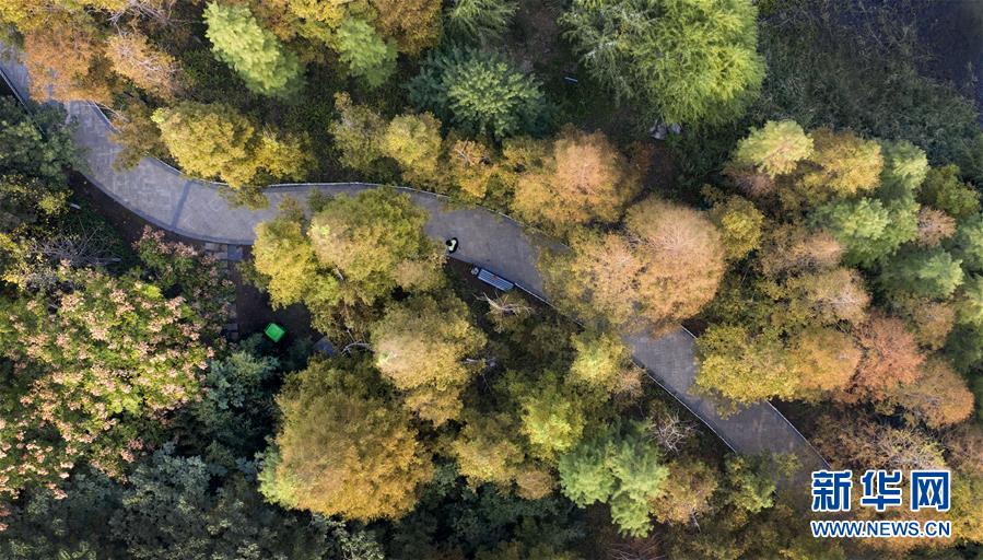 10月18日无人机拍摄的徐州市云龙湖风景区。 近日,国家生态园林城市江苏省徐州市境内的云龙湖、云龙山秋色渐浓,风光秀美,景色如画。 徐州,这座城市曾因煤而兴也因煤而困,资源枯竭一度背上沉重的生态包袱。党的十八大以来,深感环境之痛的徐州努力践行新发展理念,城市涅槃变革,迎来由“黑”变“绿”的生态逆转。 新华社记者 季春鹏 摄
