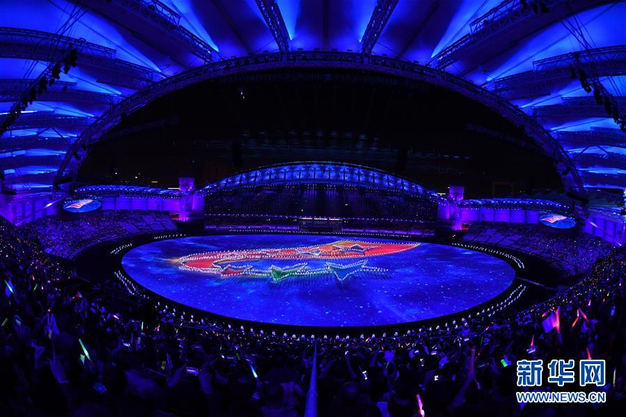 10月18日,第七届世界军人运动会开幕式在武汉体育中心举行。 这是武汉体育中心内景。(10月18日摄) 新华社记者 王鹏 摄
