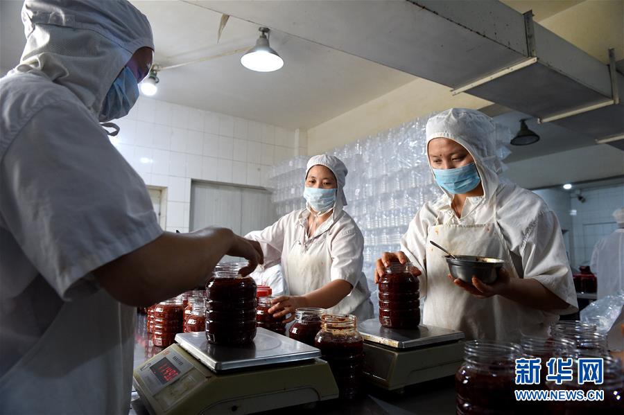 10月18日,在成都市郫都区一家生产企业,工人在包装车间把豆瓣酱装罐后进行重量核对。 郫县豆瓣是川味食谱中常用的调味佳品,有“川菜之魂”之称。早在2008年,郫县豆瓣传统制作技艺就已列入第二批国家级非物质文化遗产名录。当日,在第七届中国成都国际非物质文化遗产节期间,记者来到成都市郫都区,探访郫县豆瓣的制作过程。目前,郫县豆瓣在郫都区全区证名商标企业有75家,从业人员有1.8万人,年产值超过100亿。 新华社发(王曦摄)