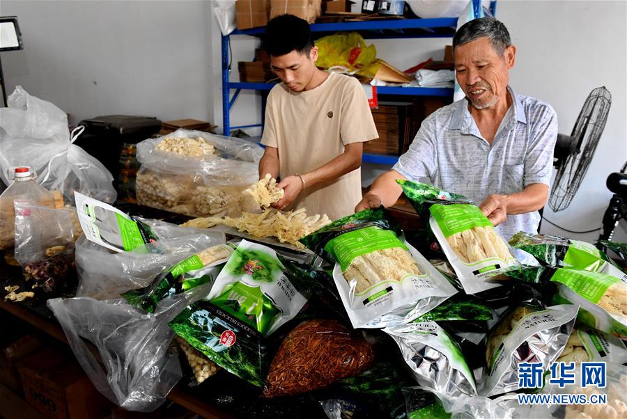 10月18日,建瓯市电商产业园商家在包装配送农产品。 近年来,国家电子商务进农村综合示范县——福建省建瓯市大力发展农村电商产业,网络交易规模不断扩大,当地竹笋、茶叶、锥栗、食用菌等农产品搭上“互联网+”快车销往全国各地,年电子商务交易额达40多亿元,有效推动了当地乡村振兴。 新华社记者 张国俊 摄