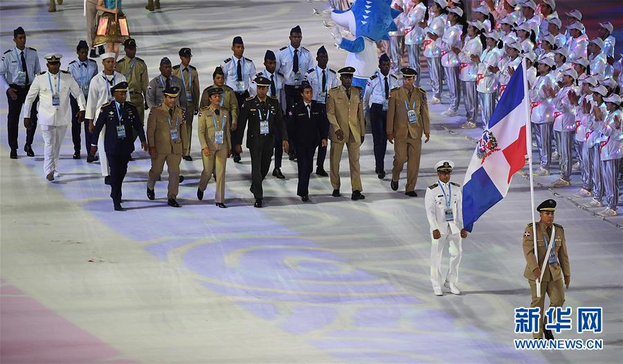 10月18日,多米尼加代表团在开幕式上入场。 当日,第七届世界军人运动会开幕式在武汉体育中心举行。 新华社记者肖艺九摄