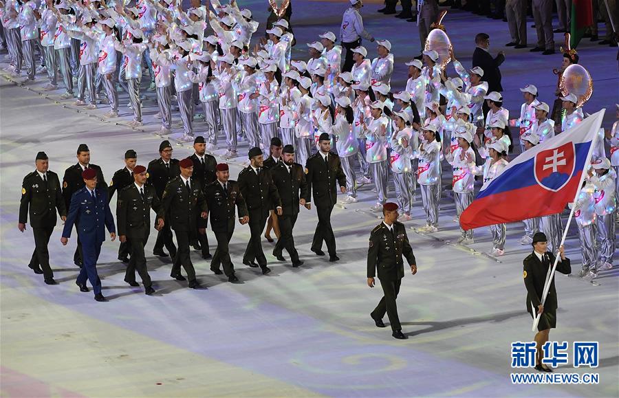 10月18日,斯洛伐克代表团在开幕式上入场。 当日,第七届世界军人运动会开幕式在武汉体育中心举行。 新华社记者肖艺九摄