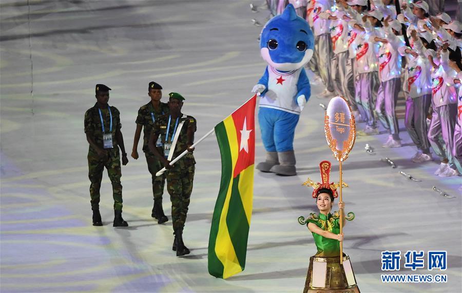 10月18日,多哥代表团在开幕式上入场。 当日,第七届世界军人运动会开幕式在武汉体育中心举行。 新华社记者肖艺九摄