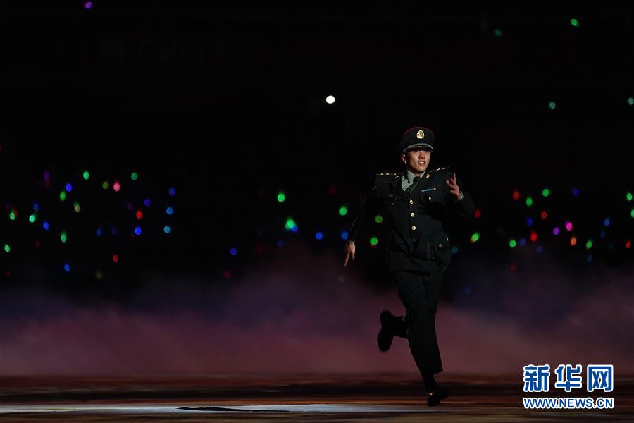 10月18日,演员在开幕式上表演。 当日,第七届世界军人运动会开幕式在武汉体育中心举行。 新华社记者金良快摄