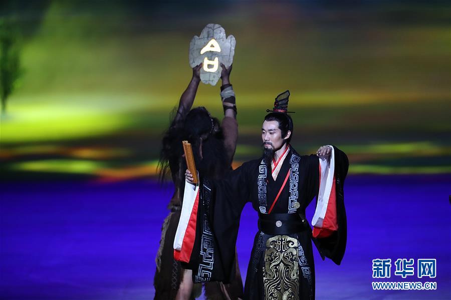 10月18日,演员在开幕式上表演。 当日,第七届世界军人运动会开幕式在武汉体育中心举行。 新华社记者刘续摄