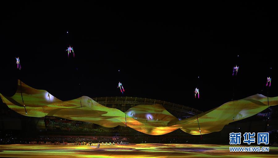 10月18日,演员在开幕式上表演。 当日,第七届世界军人运动会开幕式在武汉体育中心举行。 新华社记者刘续摄