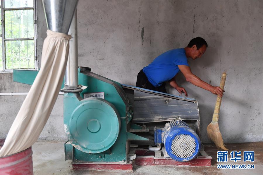 在四川省凉山州喜德县阿吼村,一名村民清扫村里的电磨坊(9月6日摄)。 新华社记者 孙瑞博 摄