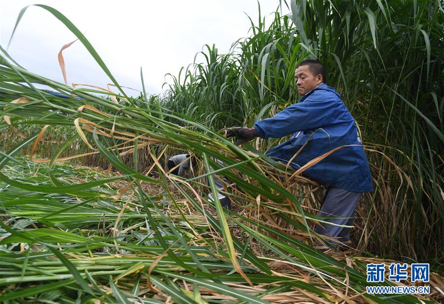 10月18日,在广西都安瑶族自治县地苏镇右江村,村民在割牧草准备喂牛。 近年来,广西都安瑶族自治县在脱贫攻坚中,大力实施“粮改饲”工程,同时实施“贷牛还牛”“贷羊还羊”工程,用所种植的牧草饲养牛羊,大力发展绿色生态养殖,被群众称为“绿色车间”的牛羊养殖场遍布乡村,助推乡村绿色发展,帮助群众增收致富。 目前,全县“粮改饲”已超过10万亩,建成3个万头种牛基地、5个万只肉羊基地,成立牛羊合作社247家,形成“县有基地、乡有牛场、村有牛社、户有牛羊”的养殖格局。 新华社记者 陆波岸 摄