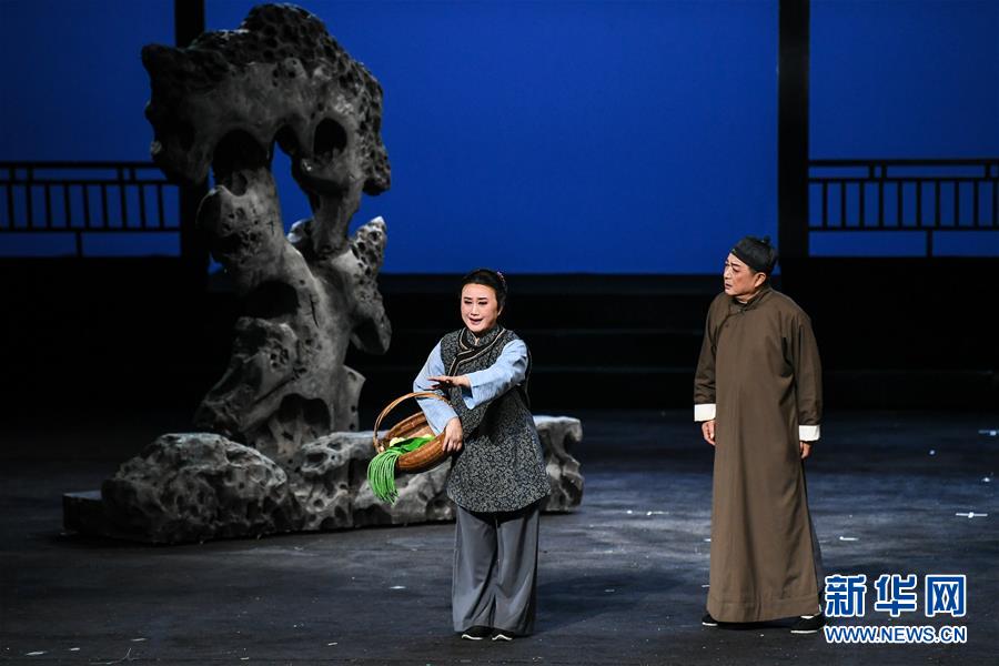 10月18日,演员在苏剧现代戏《国鼎魂》中表演。 当日,由苏州市苏剧团打造的苏剧现代戏《国鼎魂》在江苏南京上演。该剧根据发生在苏州的真实历史事件改编,讲述了苏州潘氏一族保护并捐赠大盂鼎、大克鼎的故事。 新华社记者 李博 摄