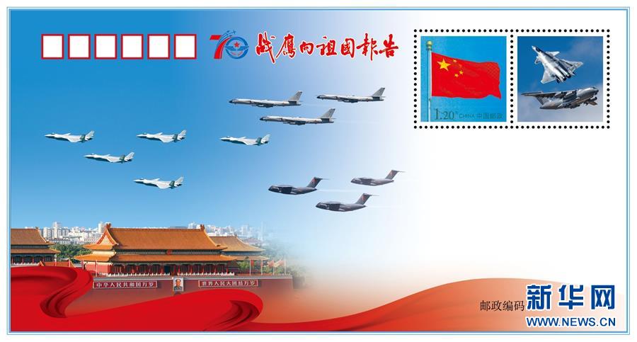 这是《战鹰向祖国报告》纪念封之一。 10月18日,庆祝人民空军成立70周年航空开放活动迎来首个公众日,空军在活动现场发布一套两枚强军主题纪念封《战鹰向祖国报告》,展现空军歼-20、运-20、轰-6N等新型战机的蓝天英姿。 新华社发