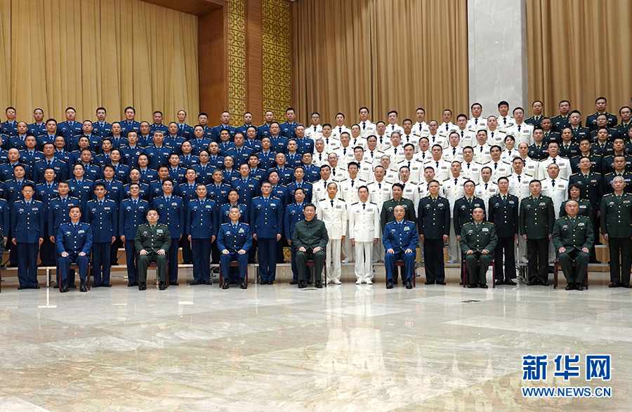 10月18日上午,中共中央总书记、国家主席、中央军委主席习近平在武汉分别接见了联勤保障部队第一次党代表大会全体代表、驻湖北部队副师职以上领导干部和团级单位主官。这是习近平亲切接见驻湖北部队副师职以上领导干部和团级单位主官。 新华社记者 李刚 摄