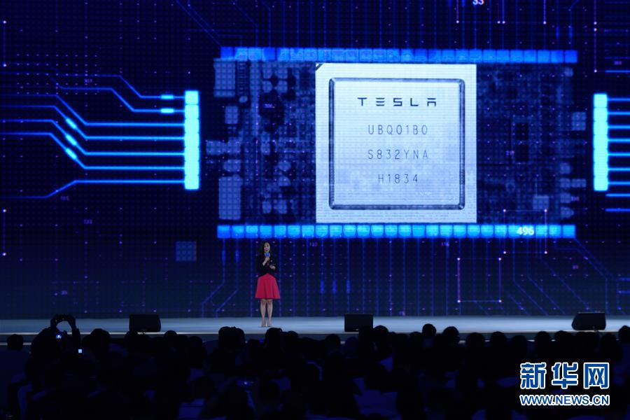10月20日,特斯拉公司代表在介绍“特斯拉完全自动驾驶芯片”。新华社记者 黄宗治 摄