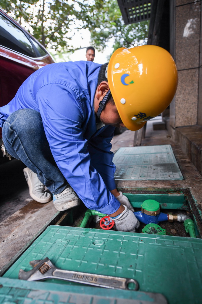 10月17日,杭州市余杭区水务控股集团的工作人员根据居民的线上申请,上门安装新水表及阀门。