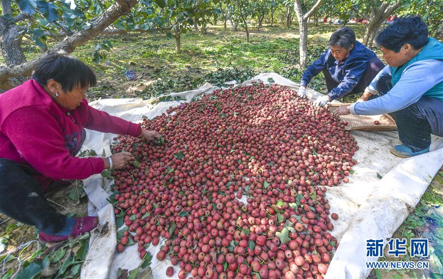 10月21日,在河北省衡水市桃城区邓庄镇东军卫山楂种植基地,果农在分拣收获的山楂。 近日,河北省衡水市桃城区邓庄镇万亩山楂种植基地的山楂迎来采摘季。近年来,河北省衡水市桃城区深化农业供给侧结构性改革,将山楂产业作为调整种植结构,增加农民收入的重点产业,衍生出食品加工、乡村旅游等新兴业态,仅种植山楂村民年每亩可收入4000元,小小的山楂让村民实现了脱贫致富。 新华社记者 李晓果 摄