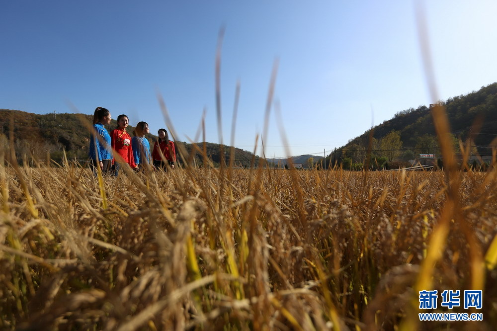 10月19日,在南泥湾的稻田里,当地群众演唱歌曲《南泥湾》。新华网 杜文杰 摄
