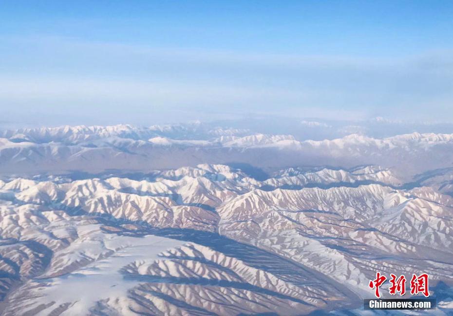 航拍祁连山风光 层峦叠嶂宛如朵朵“浪花”