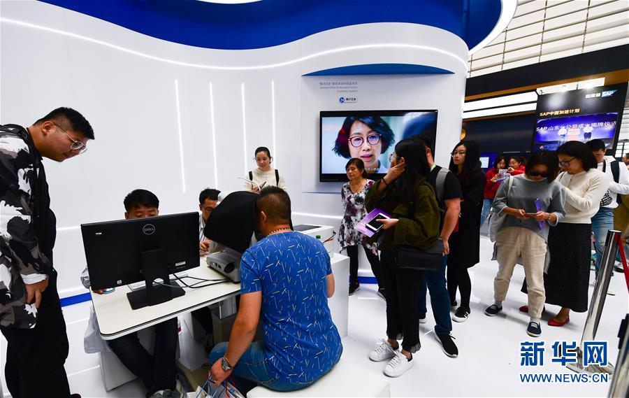 10月21日,在浙江乌镇举行的互联网之光博览会上,观众在腾讯的人工智能展台前排队体验眼底检查。 新华社记者 尹栋逊 摄