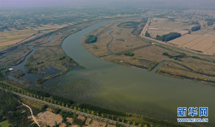 10月20日无人机拍摄的徐州市睢宁县房湾湿地公园景色。新华社记者季春鹏摄