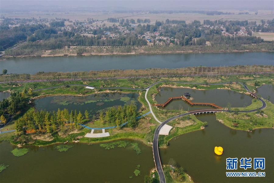 10月20日无人机拍摄的徐州市睢宁县房湾湿地公园景色。新华社记者季春鹏摄