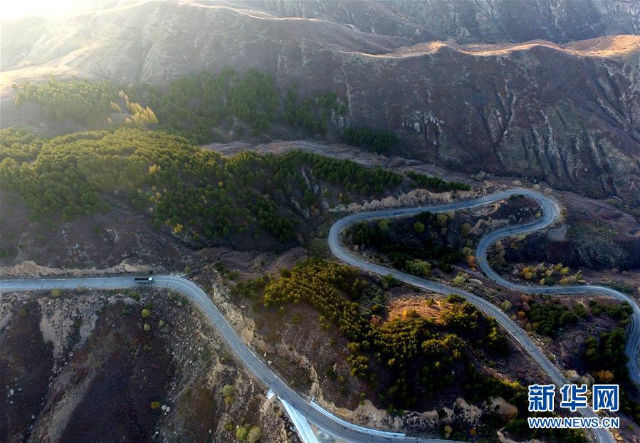 这是10月22日无人机拍摄的和林格尔县南天门秋色。 深秋时节,内蒙古和林格尔县南部山区山林披彩,秋草金黄,一派秋日美景。 新华社记者任军川摄