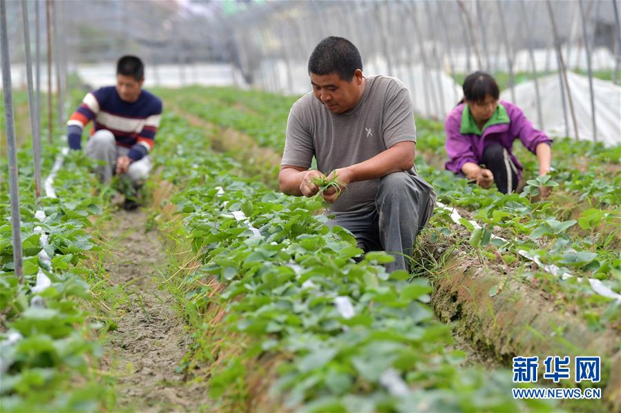 10月23日,在南昌市湾里区罗亭镇义坪村,当地农户在草莓基地除草。新华社记者 彭昭之 摄