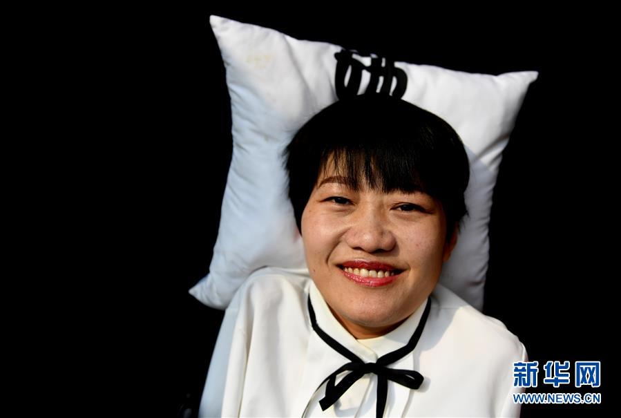 10月23日,李娟在轮椅上准备外出。 新华社记者刘军喜摄