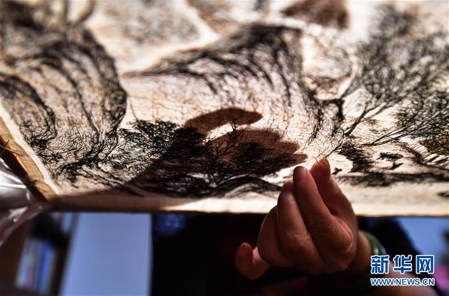 10月23日,张小红在工作室内进行刺绣。 新华社记者 胡晨欢 摄