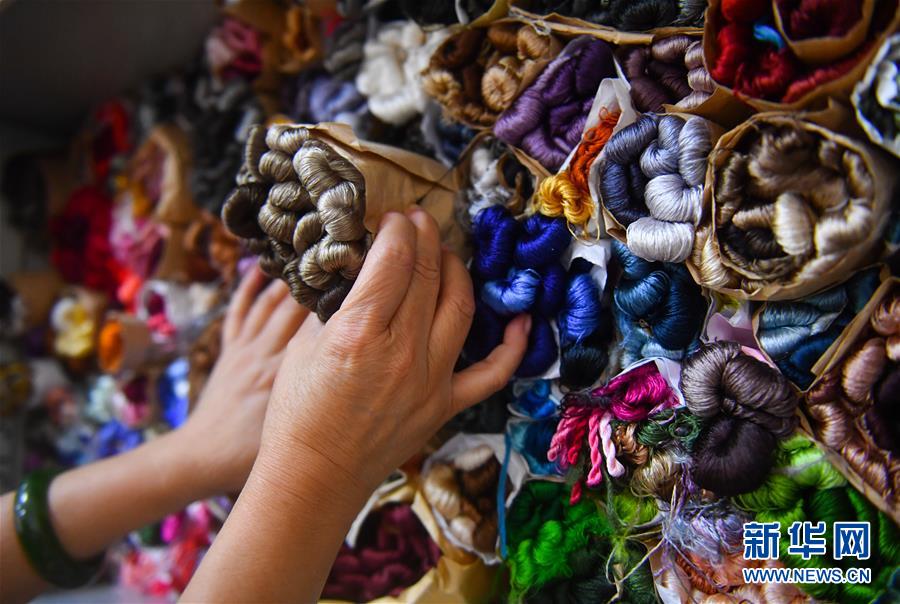 10月23日,张小红在工作室内选取刺绣所用的针线。 新华社记者 胡晨欢 摄