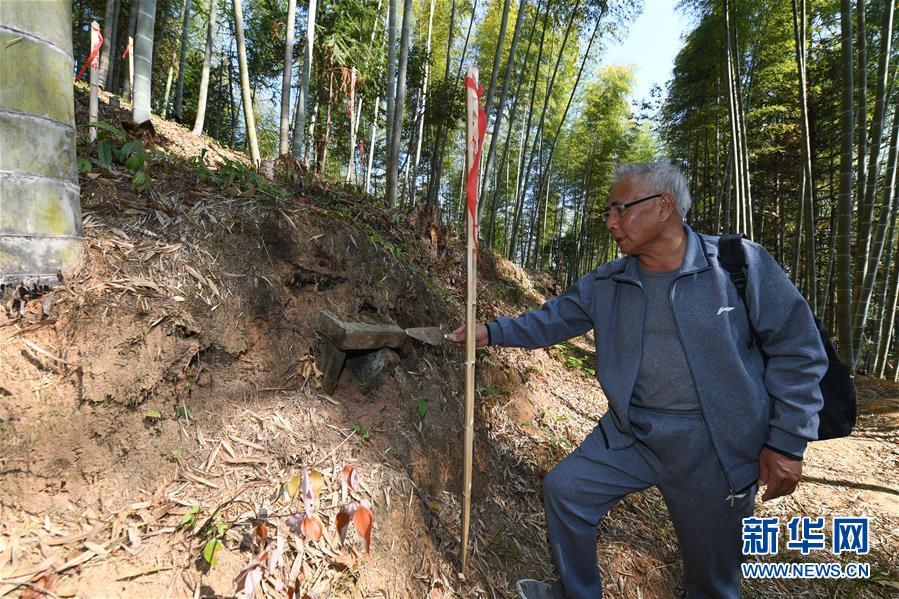 10月24日,在福建武夷山张山头红军墓群,武夷山市文物与文化遗产管理所文史研究员赵建平在介绍情况,他从一开始就参与了张山头红军墓群调查和史料整理工作。新华社记者 宋为伟 摄