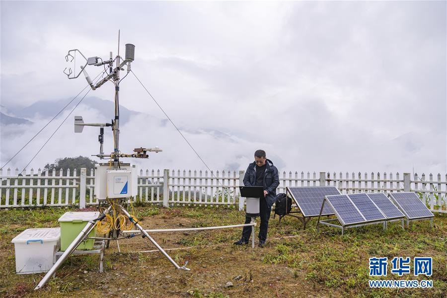 科研人员在自动气象站读取雅鲁藏布大峡谷的降水数据(10月23日摄)。 新华社记者孙非 摄
