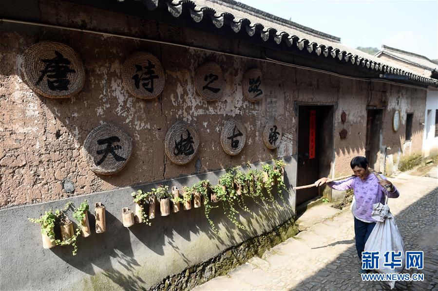 10月24日,班竹村一名老人挑货走在村内的道路上。 浙江省新昌县境内的班竹村位于天姥山脚下,被称为“天姥门户”,曾是浙东“唐诗之路”上的驿站。近年来,班竹村依托深厚的文化底蕴大力发展乡村旅游,全村“人人参股、户户分红”,将整个村庄打造为旅游综合体,今年以来班竹村旅游收入已超过800万元。 新华社记者 韩传号 摄