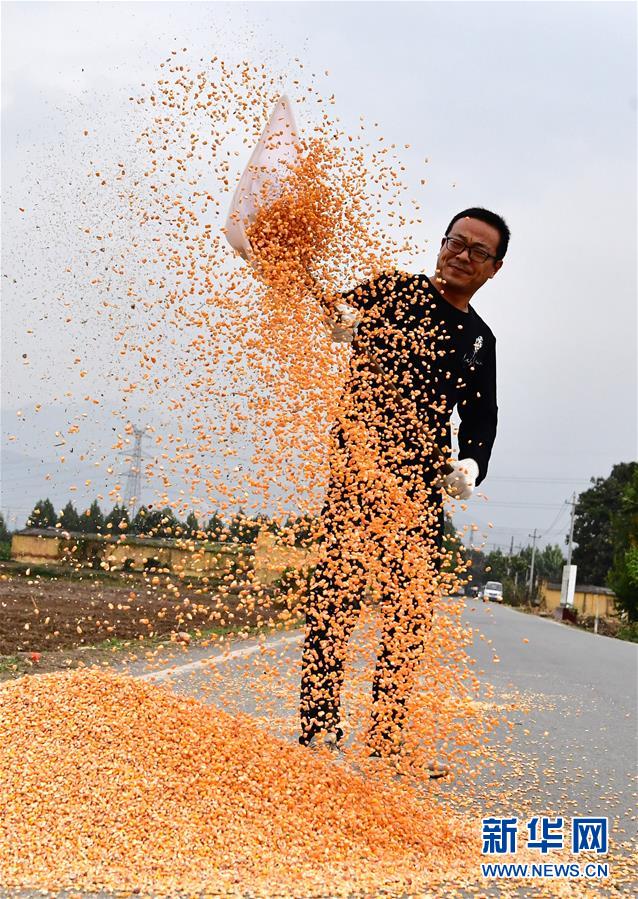 产粮大省的别样秋色 在河南省巩义市西村镇滹沱村,村民在晾晒玉米(10月24日摄)。新华社记者冯大鹏摄