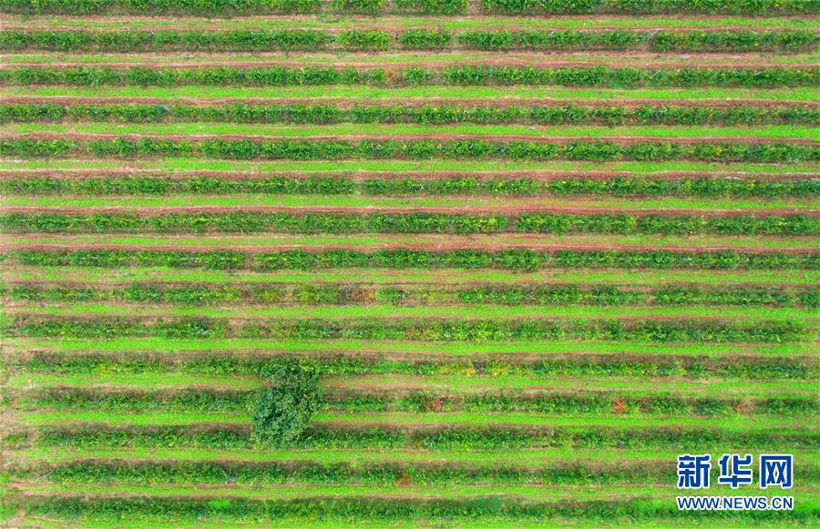 河南省洛宁县马店镇关庙村金珠沙梨种植基地(10月9日无人机拍摄)。 新华社记者李嘉南摄