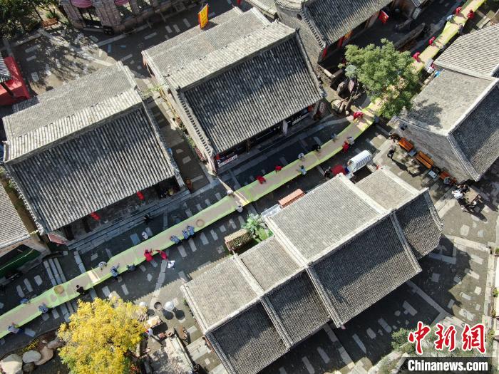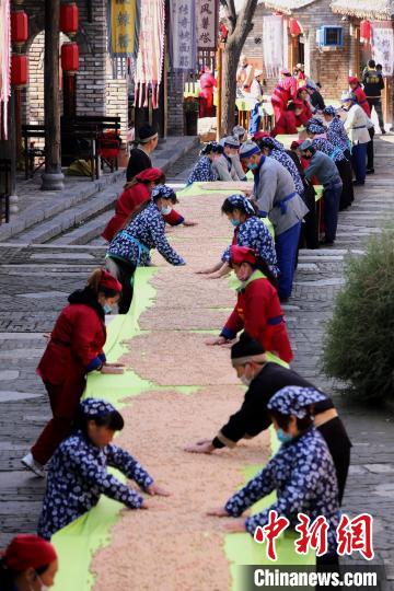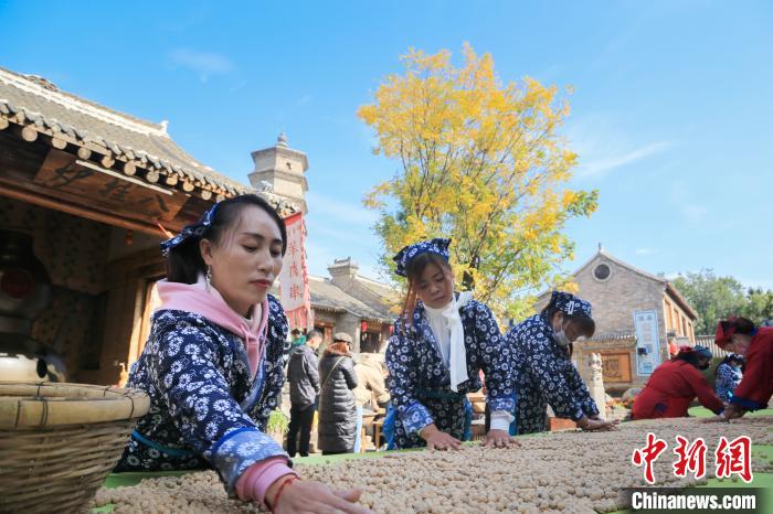 10月25日,王屋山下的王屋老街,民众正在集中晾晒展示土馍。土馍连绵百米,蜿蜒曲折成美景,与古色古香的老街相映成趣。据介绍,这些土馍将会打包销往全国各地,土馍是当地特有的土特产,就是把面团放在土中炒制,做法独特,自古就有。土馍所用的土是王屋山特有的白土,又叫观音土,是一种可以食用的土,带有矿物质和有益的微量元素,高铁、高钙、高锌、高钾,能调节人体机能,健胃消食,适量食用养生保健。