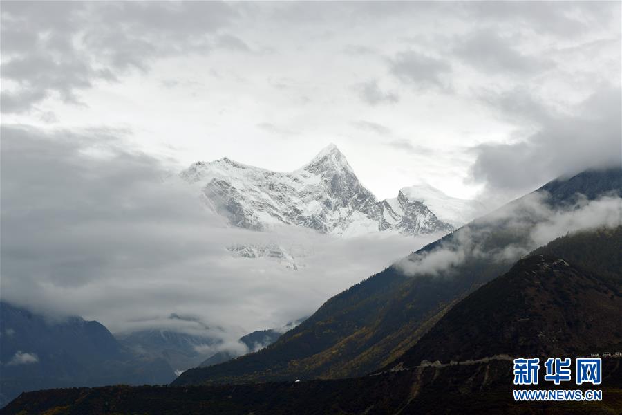 这是在西藏林芝市米林县境内拍摄的南迦巴瓦峰(10月25日摄)。 南迦巴瓦峰海拔7782米,位于喜马拉雅山脉东端、西藏林芝市米林县境内。山峰终年积雪,云雾缭绕,宛如水墨画卷。 新华社记者 李鑫 摄