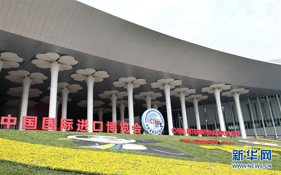 10月25日,这是国家会展中心(上海)南广场的鲜花装饰。 第二届中国国际进口博览会开幕在即,在进博会举办地、国家会展中心(上海)内,展馆搭建施工人员和展会志愿者们在进行从展台搭建到完善观展标识等的布展准备工作。 新华社记者 方喆摄