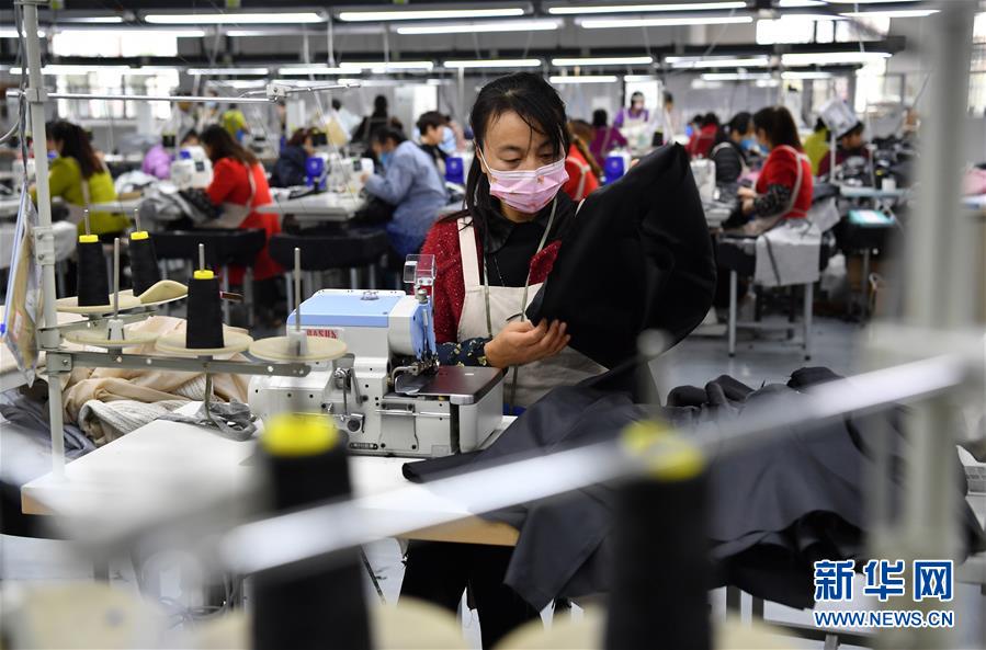 工人在位于城固县的汉中克莱德服饰有限公司车间加工服装(10月25日摄)。 近年来,陕西省汉中市城固县坚持把产业扶贫作为脱贫攻坚的根本之策,紧紧围绕“村村有产兴业、户户有业增收”目标,多措联动发力实施精准扶贫、精准脱贫战略。2016年以来,城固县共实现脱贫退出66个村、1.2万多户近4万人,贫困发生率由10.85%降至3.64%。 新华社记者 刘潇 摄