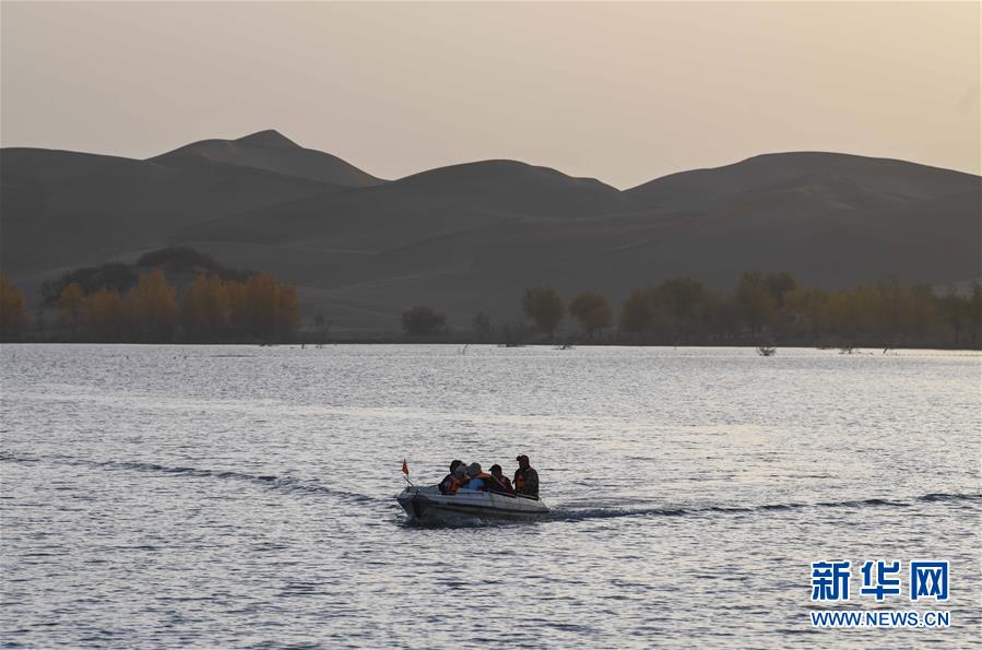 游客乘船欣赏新疆尉犁县罗布湖美景(10月25日摄)。 金秋十月,在新疆南部的塔里木盆地,金色胡杨迎来最美季节,吸引大批游客前来观赏。来自新疆维吾尔自治区文化和旅游厅的数据显示,今年1-9月,新疆接待国内外游客18385.84万人次,同比增长40.9%;实现旅游收入3046.38亿元,同比增长40.78%,均创历史新高。 新疆塔里木河流域胡杨林面积达1500万亩,这些广泛分布于河流两岸的植被,不仅生命力顽强,而且阻隔了我国第一大沙漠塔克拉玛干沙漠的侵袭,也构成了“大漠胡杨”“水韵胡杨”等美景。 新华社记者 赵戈 摄