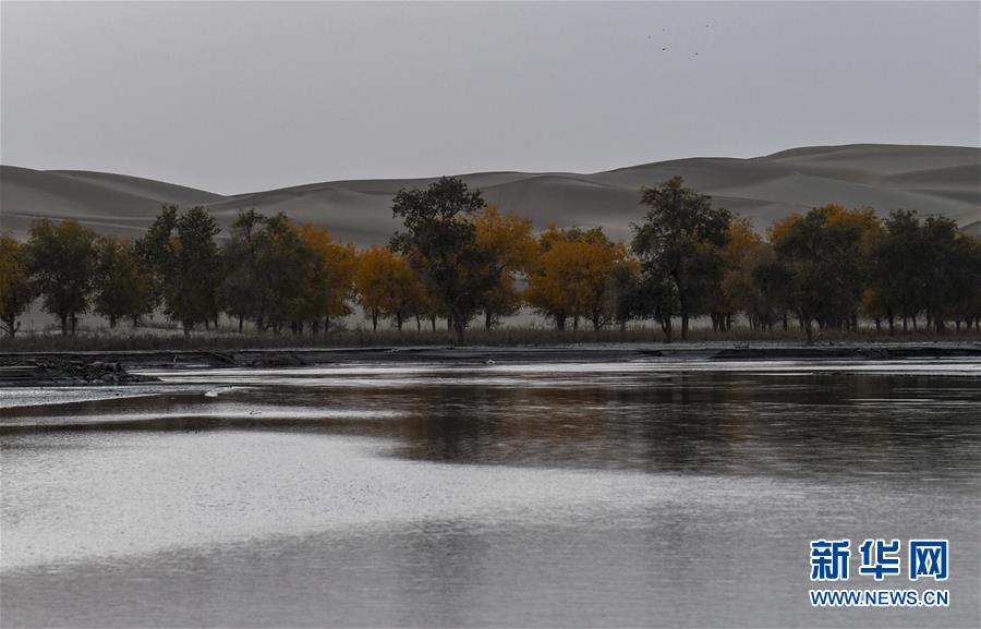 这是塔里木河沿岸的胡杨(10月26日摄)。 金秋十月,在新疆南部的塔里木盆地,金色胡杨迎来最美季节,吸引大批游客前来观赏。来自新疆维吾尔自治区文化和旅游厅的数据显示,今年1-9月,新疆接待国内外游客18385.84万人次,同比增长40.9%;实现旅游收入3046.38亿元,同比增长40.78%,均创历史新高。 新疆塔里木河流域胡杨林面积达1500万亩,这些广泛分布于河流两岸的植被,不仅生命力顽强,而且阻隔了我国第一大沙漠塔克拉玛干沙漠的侵袭,也构成了“大漠胡杨”“水韵胡杨”等美景。 新华社记者 赵戈 摄