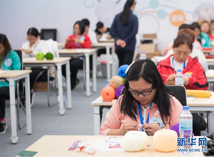 10月27日,残疾人选手参加编织职业技能大赛。 当日,第六届全国残疾人职业技能大赛暨第三届全国残疾人展能节在浙江嘉兴开幕。 新华社记者翁忻旸摄