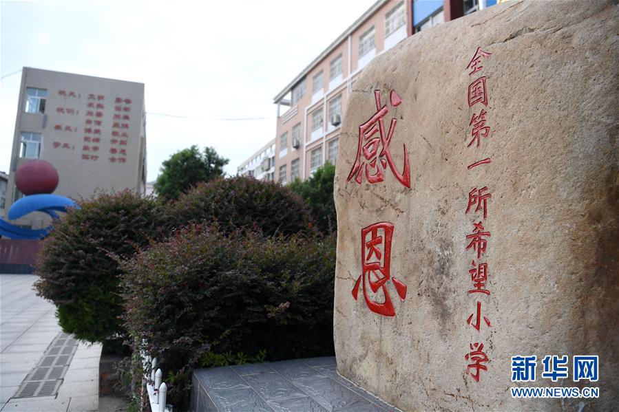 这是金寨县希望小学校园里的“感恩”石(9月3日摄)。新华社记者刘军喜摄