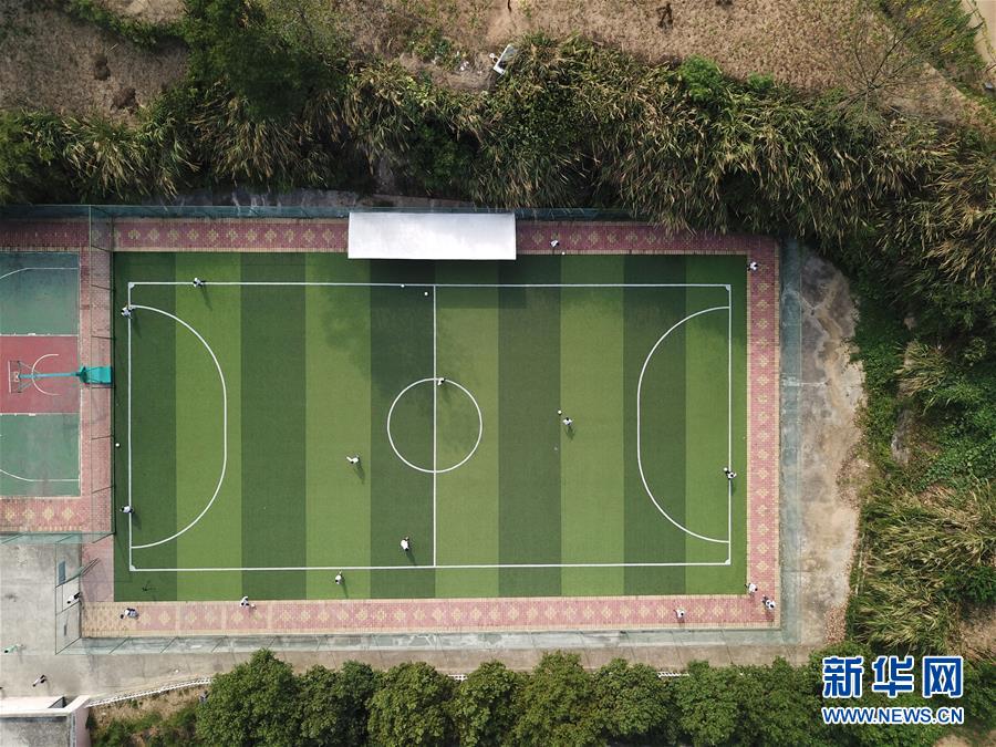 金寨县希望小学学生在上足球课(9月3日无人机拍摄)。新华社记者刘军喜摄